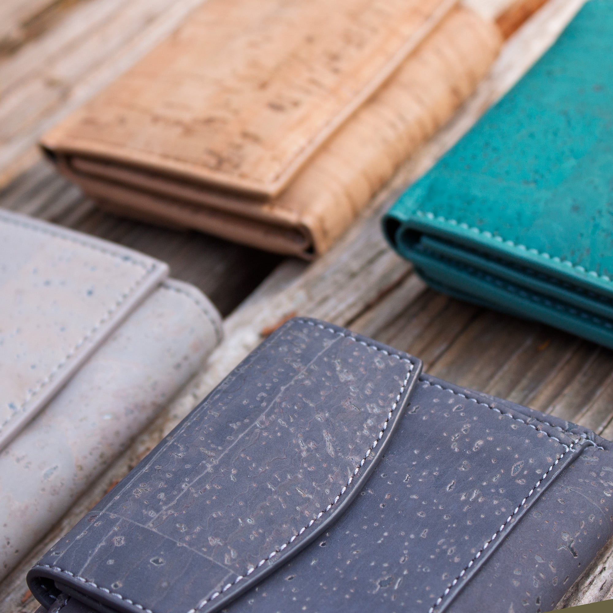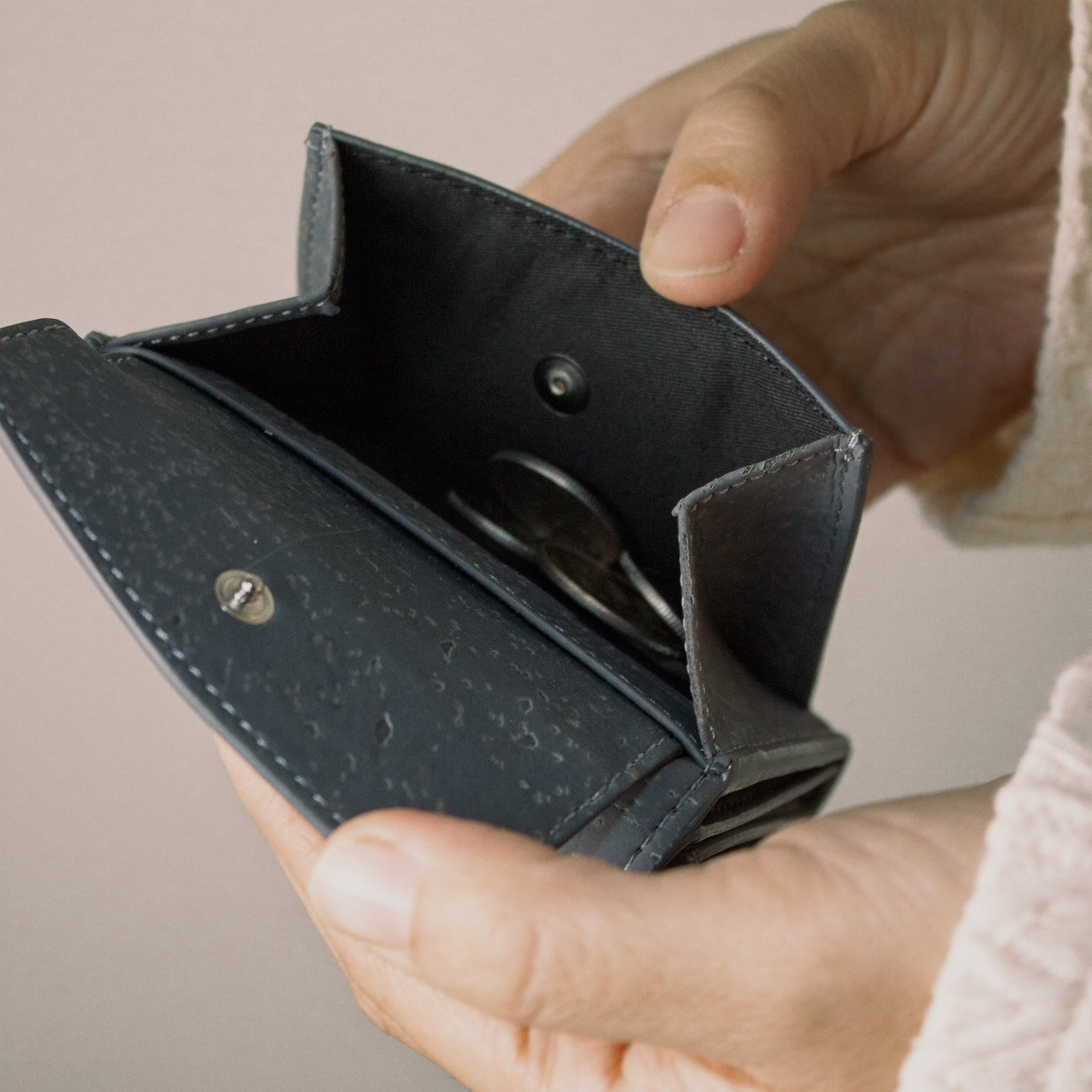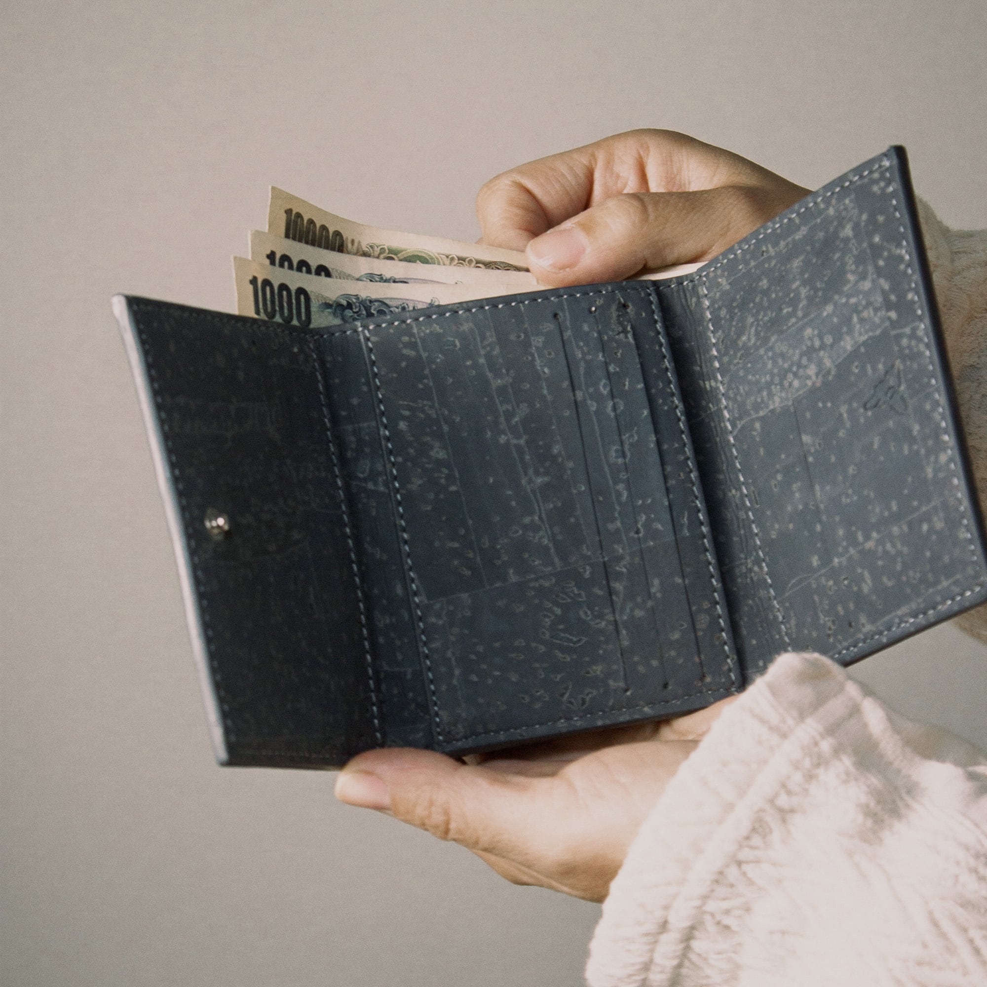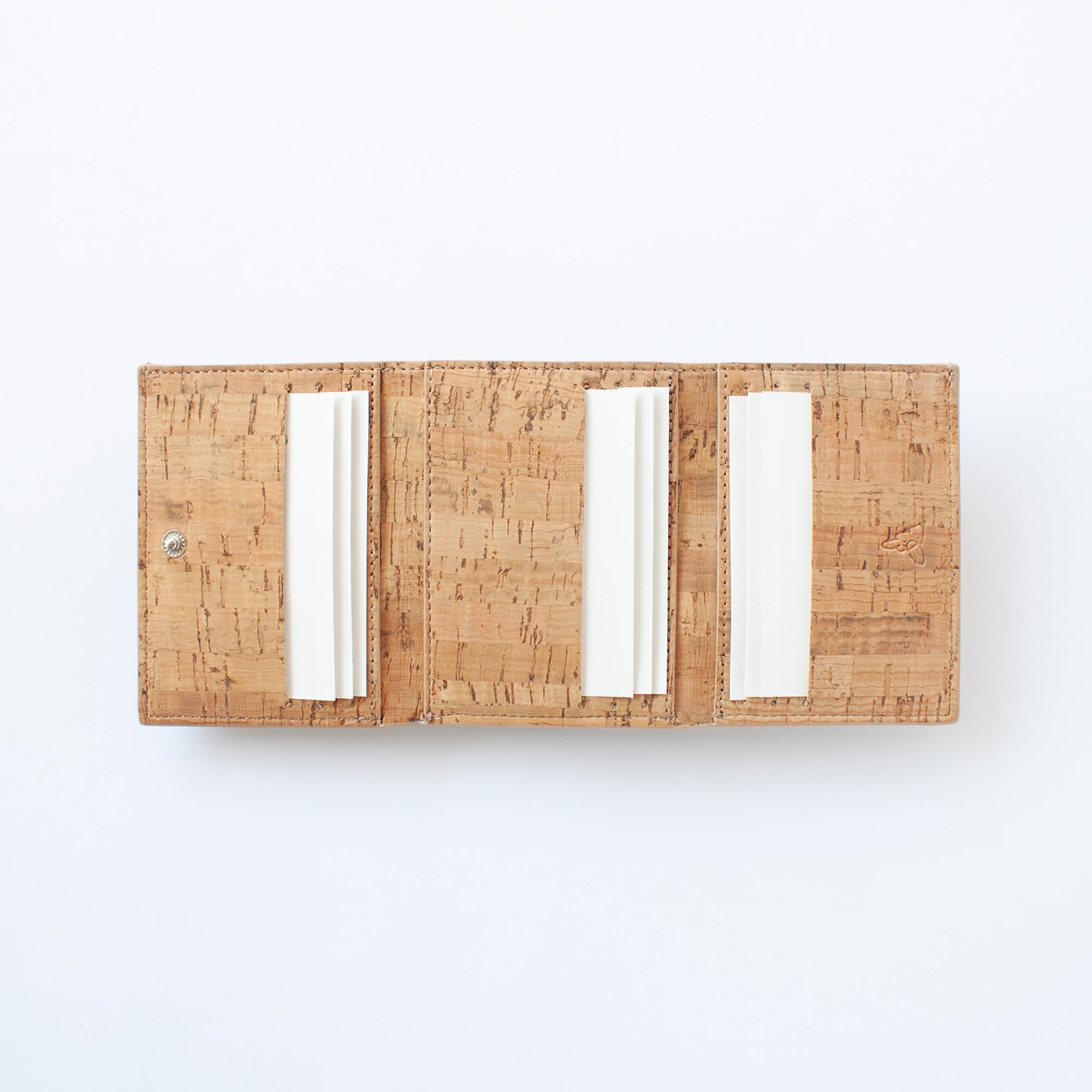 Trifoliaは、自然の温もりを感じるコルク素材を使用したコンパクトな三つ折り財布です。