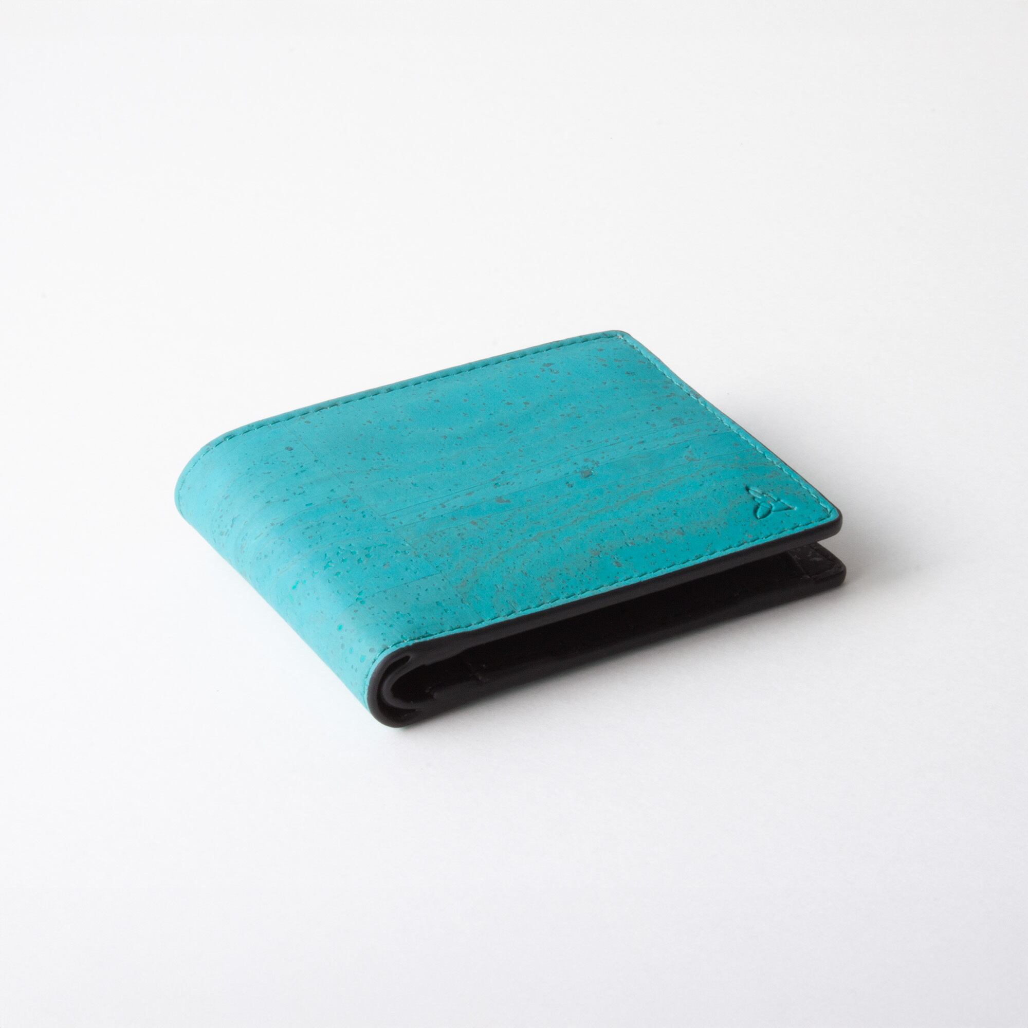 Kotyle 二つ折り財布 ティール&ブラック コルク製 小銭入れ付き